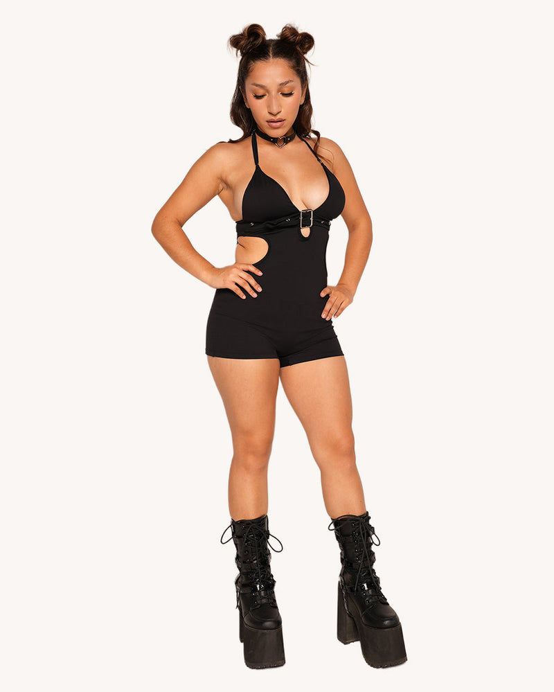 You didn’t come to dance—you came to dominate. The Club Rat Romper is for the ones who never leave before the lights come on, who thrive in chaos, and who look hot even while climbing the speaker stack.